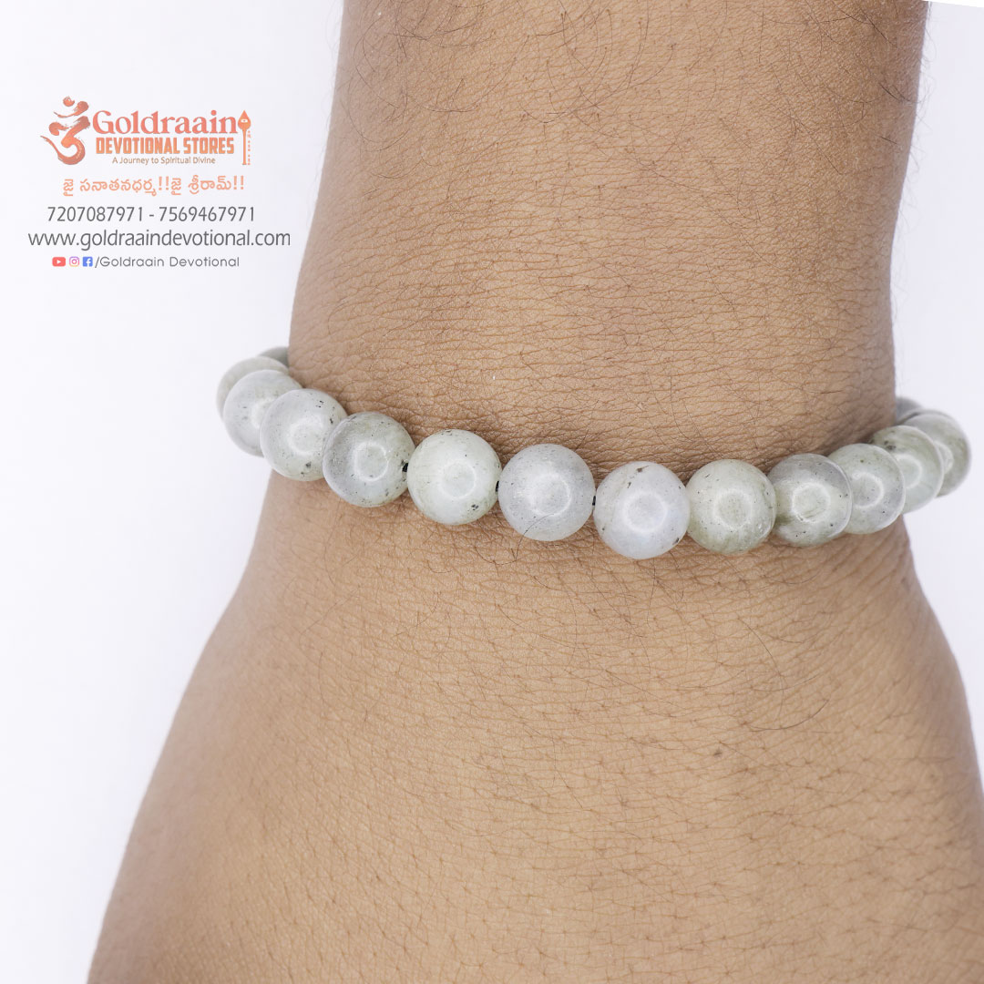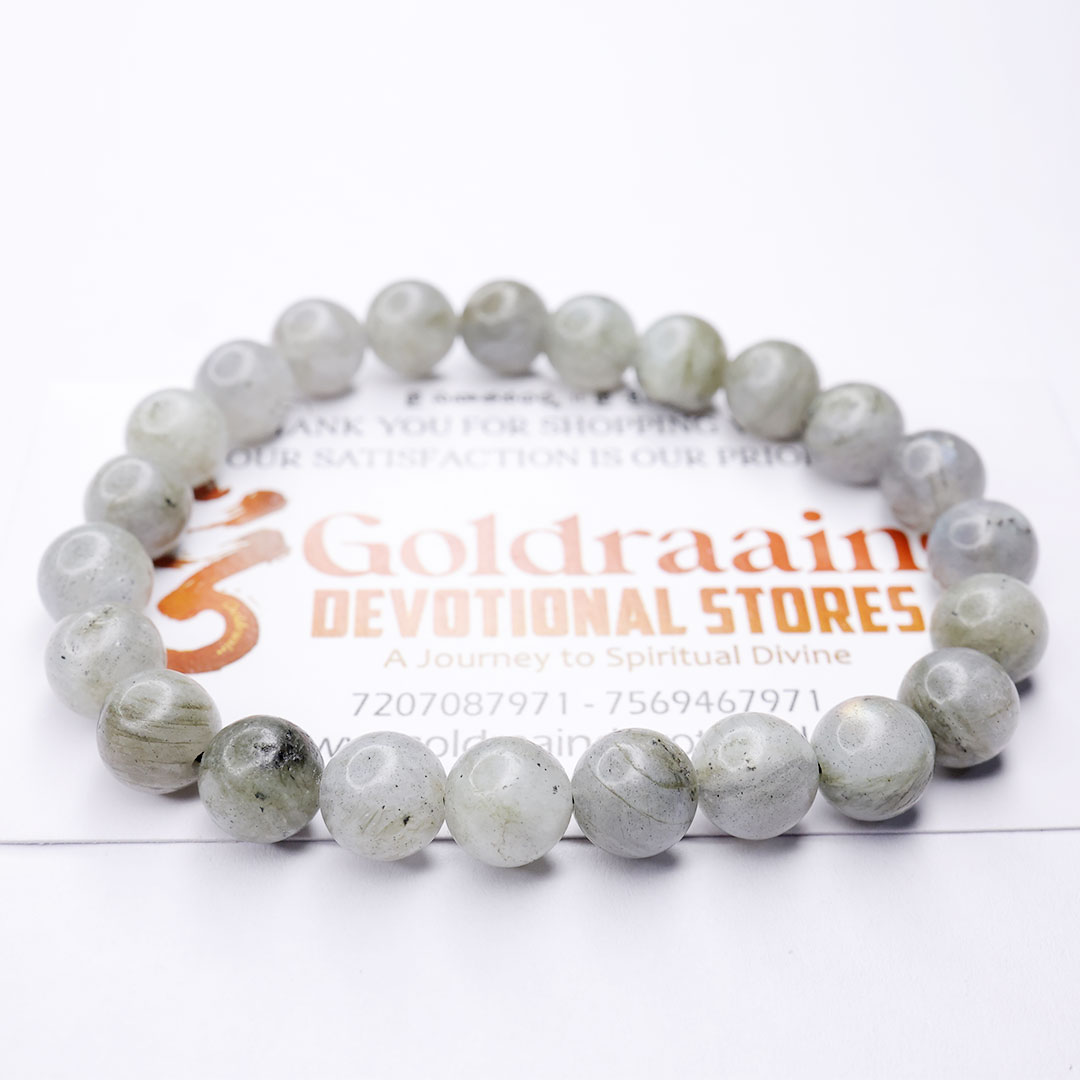 The Labradorite bracelet is a powerful spiritual accessory designed for individuals of Kumbha Rasi (Aquarius). Known for its unique iridescent shine, Labradorite is valued for supporting inner strength, clarity, and protection from negative energies.