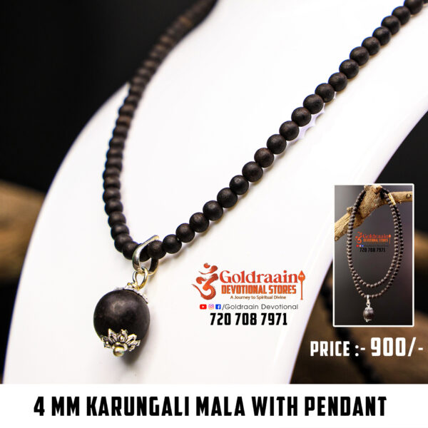 Enhance your spiritual journey with this 4mm Karungali Mala with Pendant, crafted from authentic Karungali (Ebony) wood beads. Known for its divine vibrations and protective properties, this sacred mala helps in meditation, energy cleansing, and shielding against negativity. The elegant pendant adds a touch of spiritual significance, making it perfect for daily wear, pooja, and personal well-being.