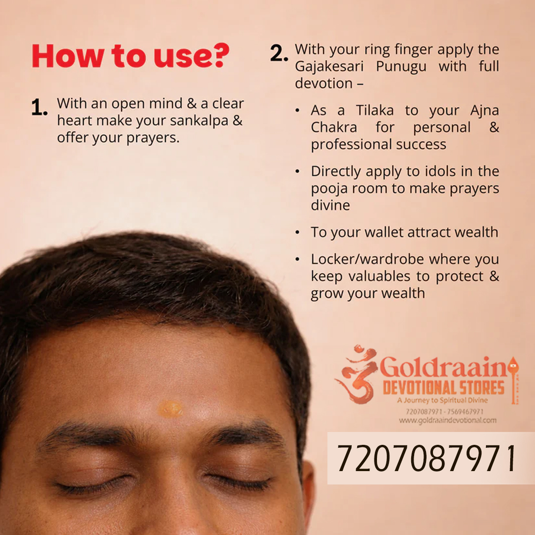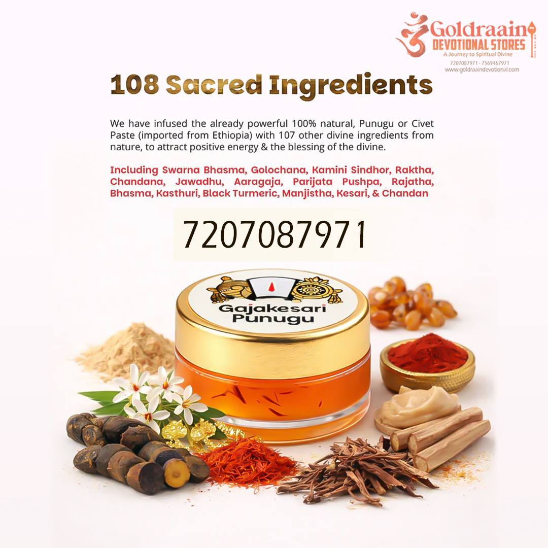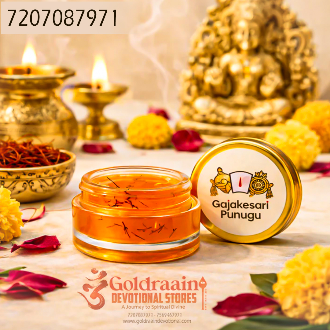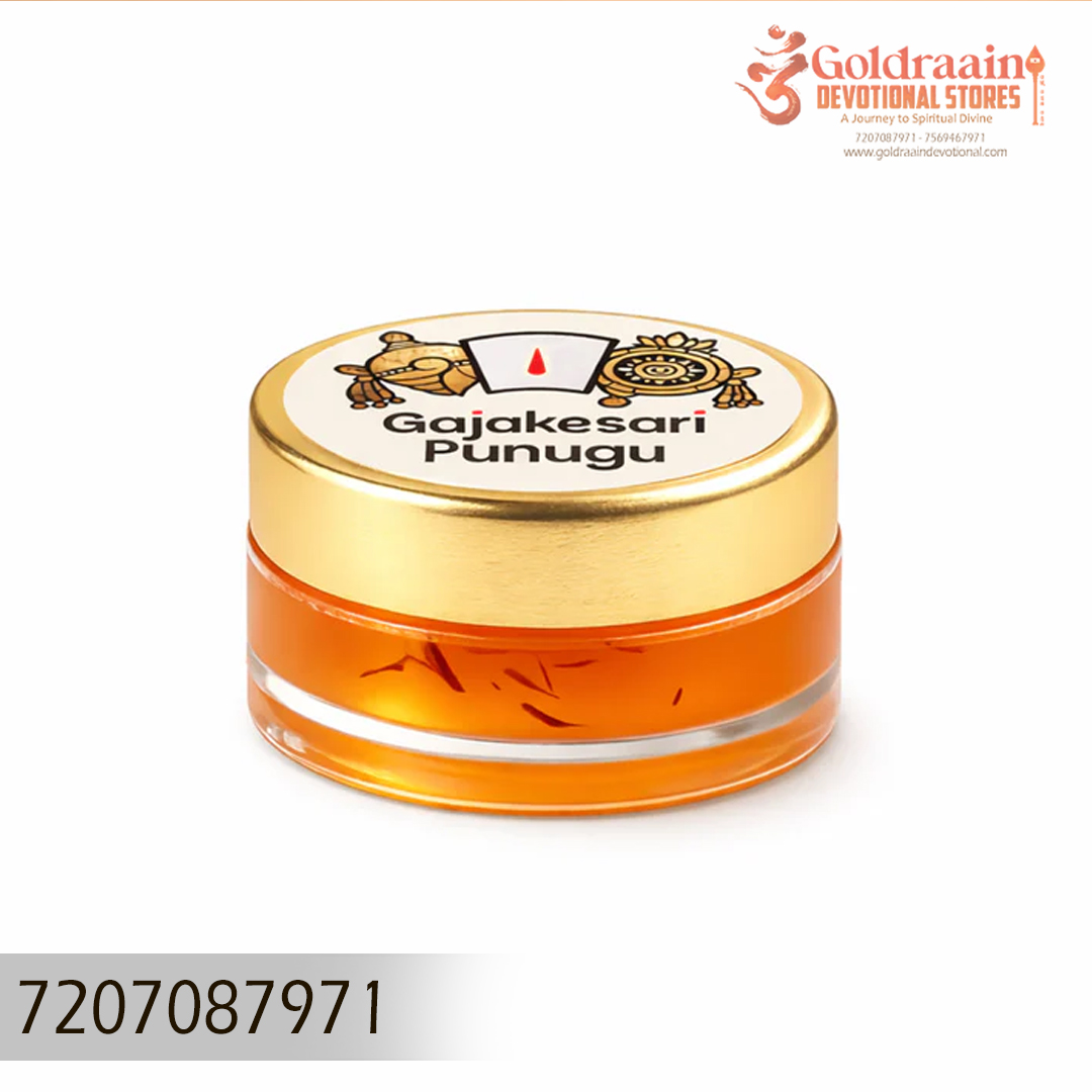 Gajakesari Punugu is a highly revered aromatic substance traditionally used in temples and spiritual rituals. Known for its deep, musky fragrance, it holds a special place in Hindu pooja practices. Derived naturally, this sacred paste is considered auspicious and is often associated with devotion and purity.