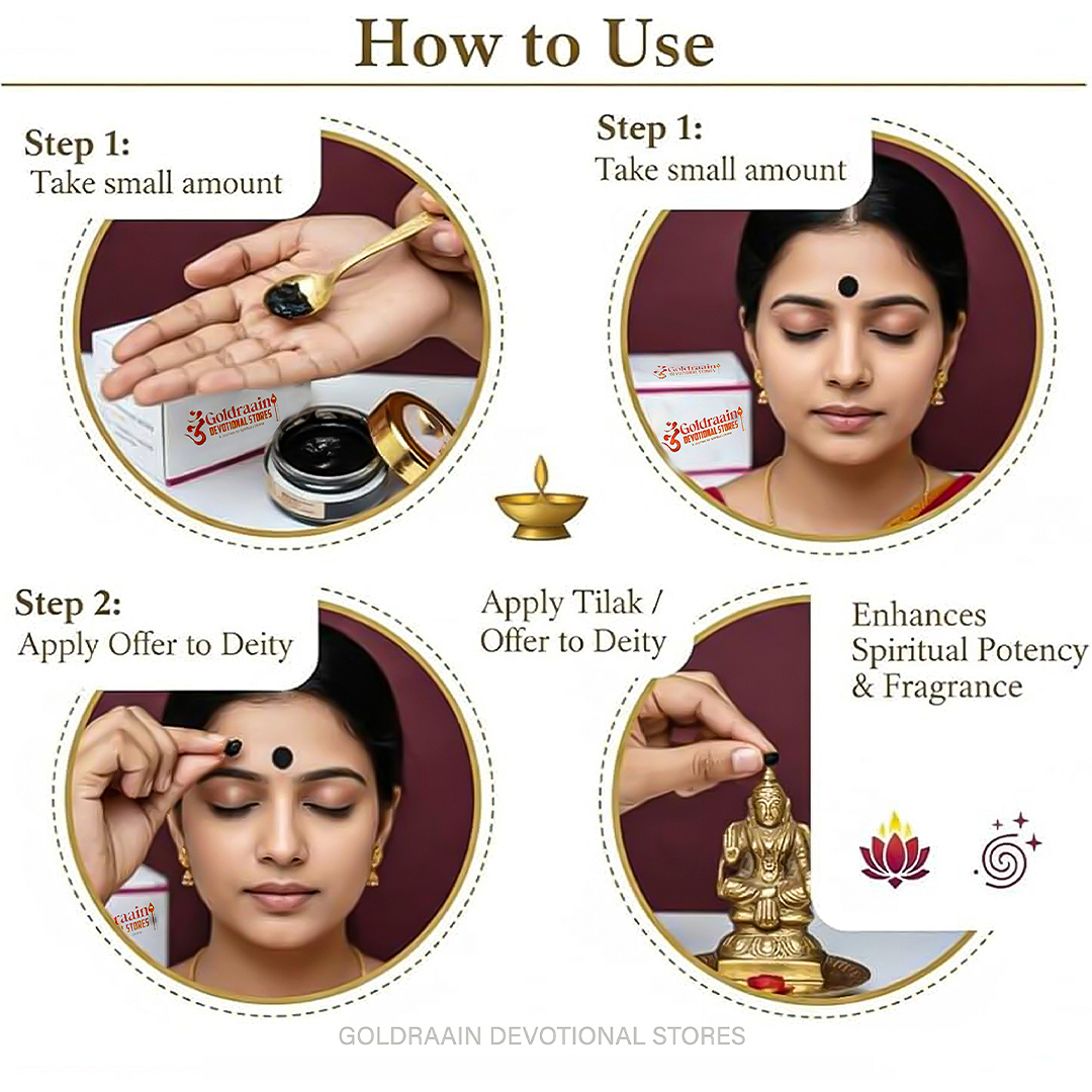 Ideal for Pooja & Meditation: Apply on the forehead, deity idols, or temples during daily pooja, abishekam, and meditation rituals.